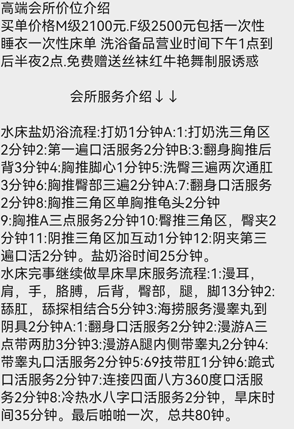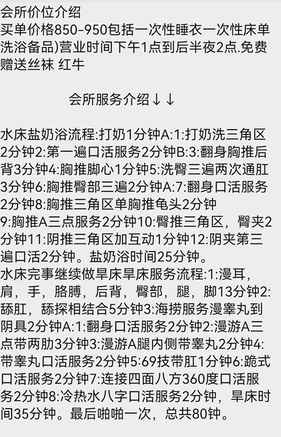 80分钟的水床 焊床 带毒龙 个别技师有跳艳舞的